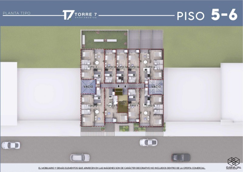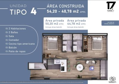 Con un total de 59 apartamentos de 1 y 2 habitaciones, diseñados para quienes buscan un espacio acogedor, funcional y con acabados totalmente terminados, listo para habitar.