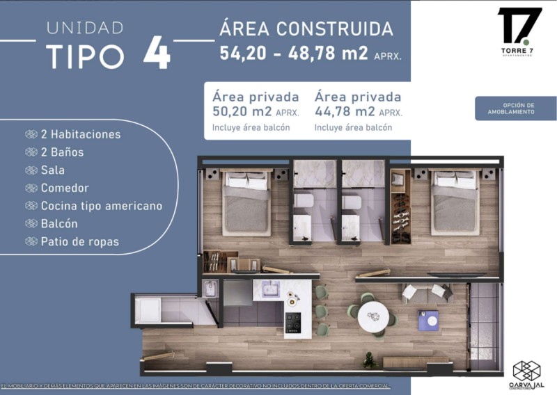 Este moderno apartamento de 2 habitaciones y 2 baños destaca por su diseño práctico y armonioso. La sala y el comedor, independientes pero conectados con la cocina tipo americano, crean un espacio ideal para compartir. Su balcón y el patio de ropas complementan la comodidad del hogar, ofreciendo frescura y funcionalidad. ¡El lugar perfecto para disfrutar cada momento!